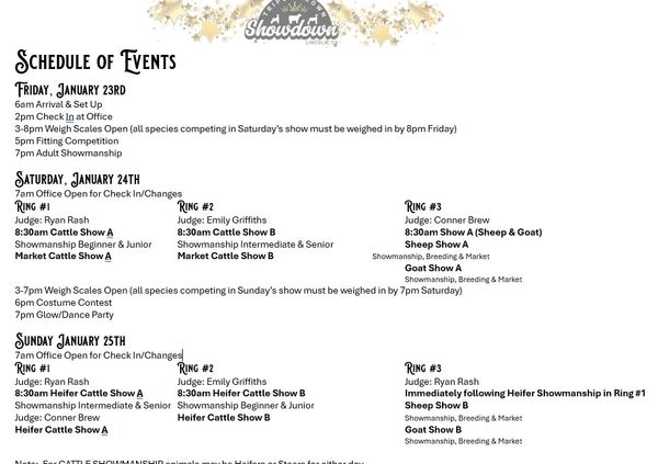 Yes, we are booked for the last full weekend in January 2026. January 24th & 25th, 2026. Cattle, Sheep, Goats & Hogs!!!